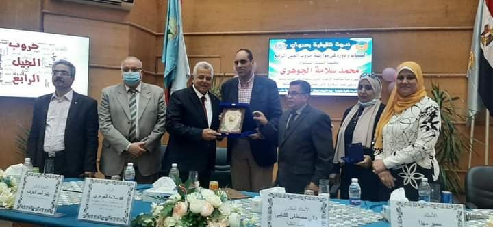 بحضور أ.د/ هانى الشامى عميد الكلية وأ.د/ ياسر الجرف وكيل الكلية وحاضر بها سيادة اللواء/ محمد سلامه الجوهرى رئيس وحدة مكافحة الارهاب الدولى بالمخابرات الحربية سابقا ووكيل لجنة الدفاع والأمن القومى بمجلس