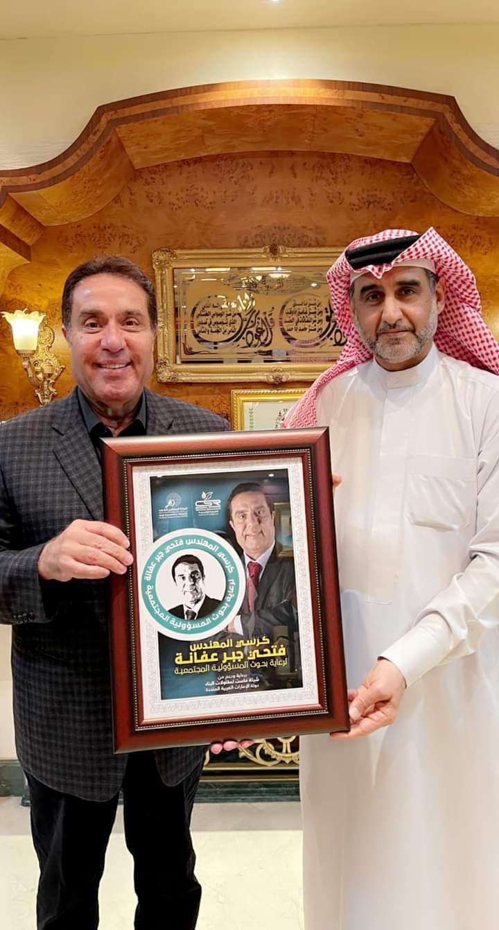 أقيمت اليوم فعاليات مراسم التقليد الرسمي لسعادة المهندس فتحي جبر عفانة الرئيس التنفيذي لمؤسسة فاست بدولة الامارات العربية المتحدة ، ومنح سعادته اللقب المهني ( مفوض أممي للترويج لأهداف الأمم المتحدة للتنمية المستدامة ٢٠٣٠) وكذلك تسليم سعادته اللو حة التذكارية ( كرسي المهندس فتحي عفانة لرعاية بحوث المسؤولية المجتمعية ) من قبل الشبكة الإقليمية للمسؤولية الاجتماعية .