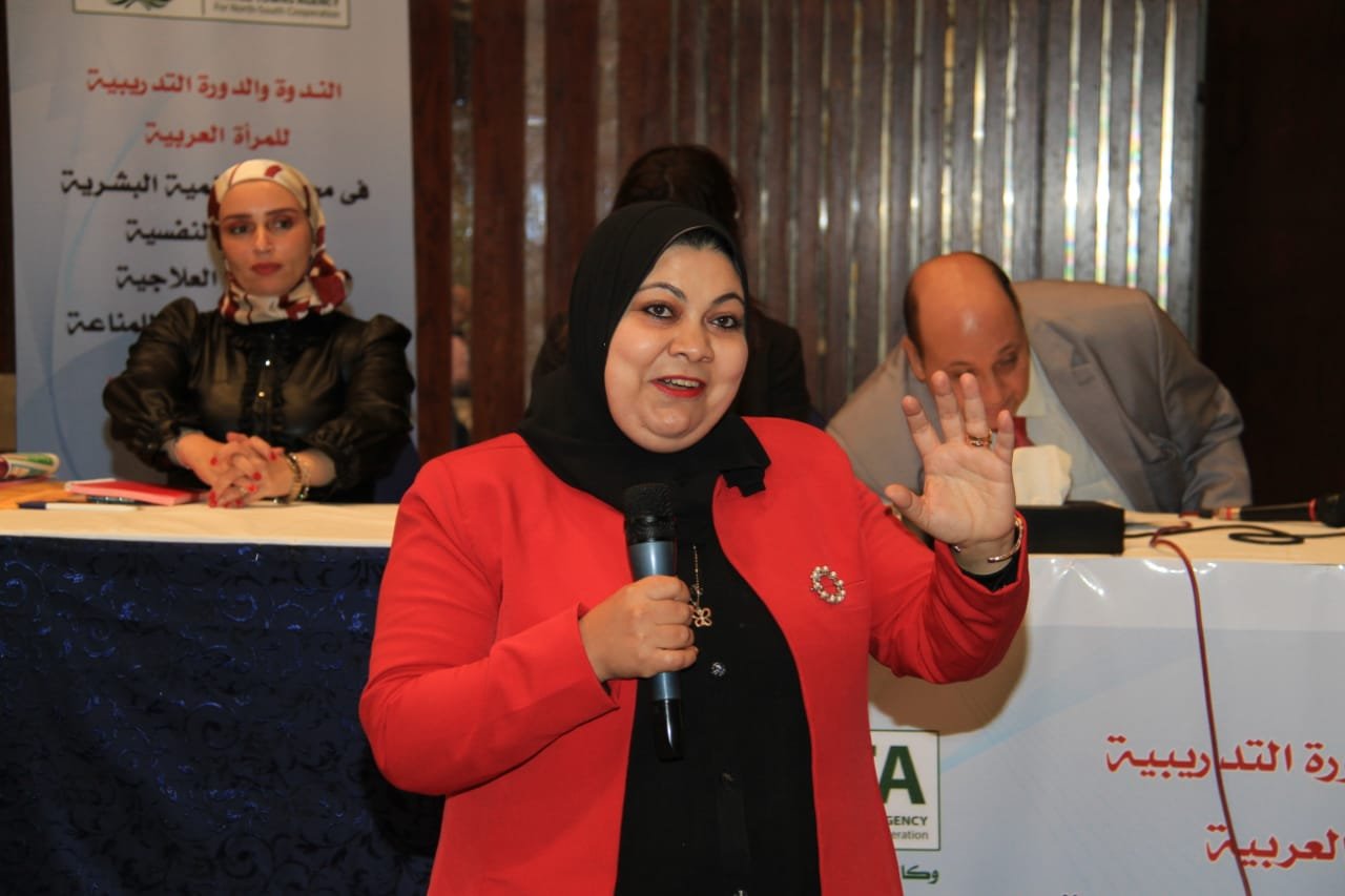 وقد استمعنا جميعا إلى كلمة الأستاذة آيه السيف الأمين العام لوكالة المدن المتحدة للتعاون الدولي واتمنى بإذن الله أن تكون هذه الندوة والدورة التدريبية ناجحة ونثق في نجاحها ونؤكد دائما أهمية البرامج التدريبية للمراة وهى تمثل نوعا من التنمية المستدامة …أكرر شكري وتقديري ولا أريد أن أطيل عليكم والسلام عليكم ورحمة الله وبركاته. ….وبعد ذلك بدأت فعاليات الدورة التدريبية فتحدثت الدكتور هالة سكر خبيرة التنمية البشرية عن الفرق بين التنمية البشرية والموارد البشرية … وعن مفهوم التنمية البشرية وأشارت إلى انه تنمية المهارات الذهنية والنفسية للانسان من اجل تحديد اهدافك والوصول إليها.. ومن اجل ان يصبح انسان ذو صحة نفسية عن طريق التكيف والتوافق مع النفس
