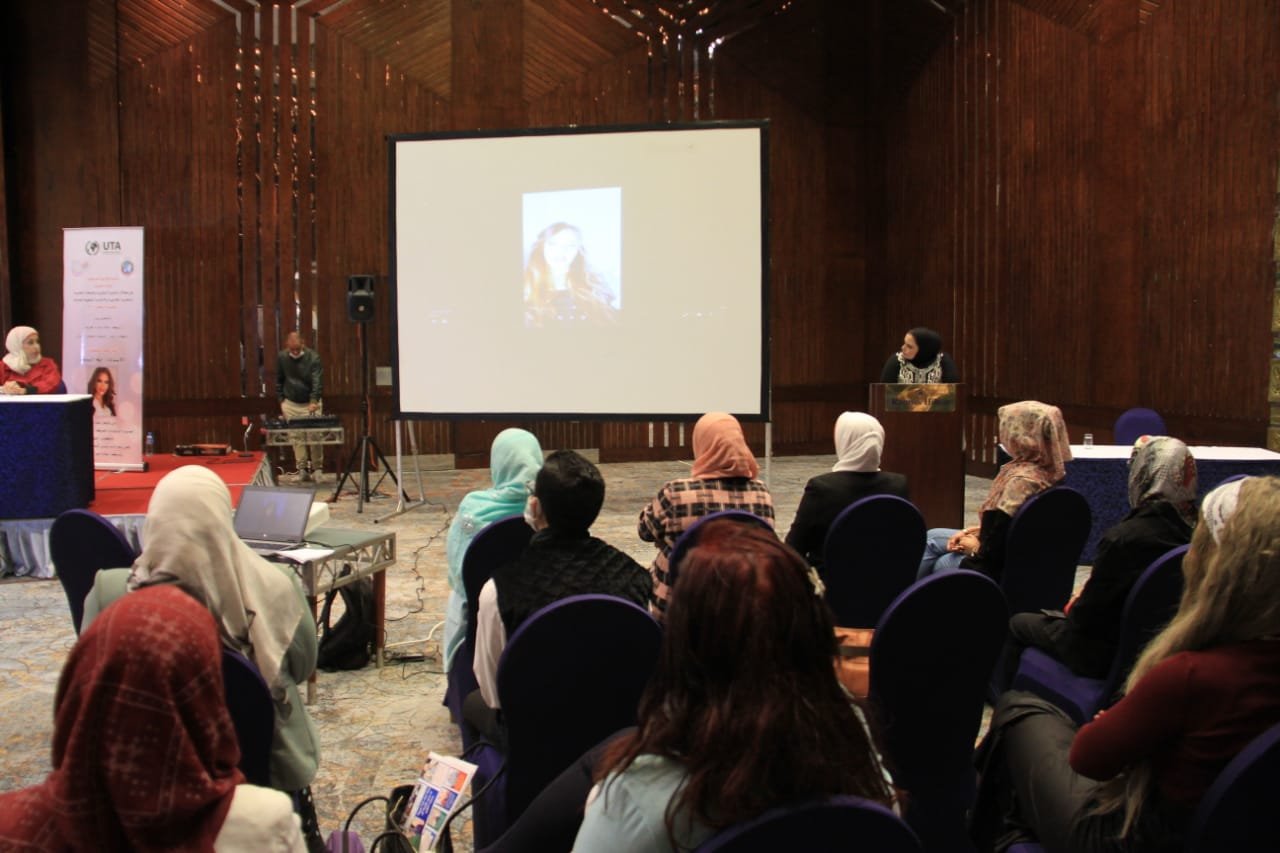 عقب ذلك تم بث كلمة متلفزة مسجلة للأستاذة آية السيف الأمين العام لوكالة المدن المتحدة للتعاون الدولي ونائب رئيس المكتب التنفيذي في شبكة إعلام المرأة العربية وفيما يلي نص كلمتها :بسم الله الرحمن الرحيم :