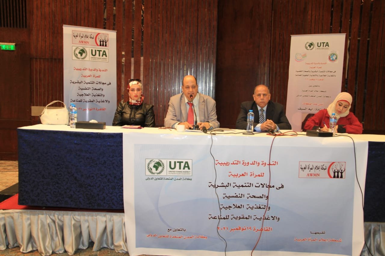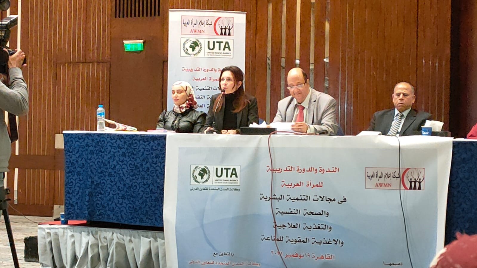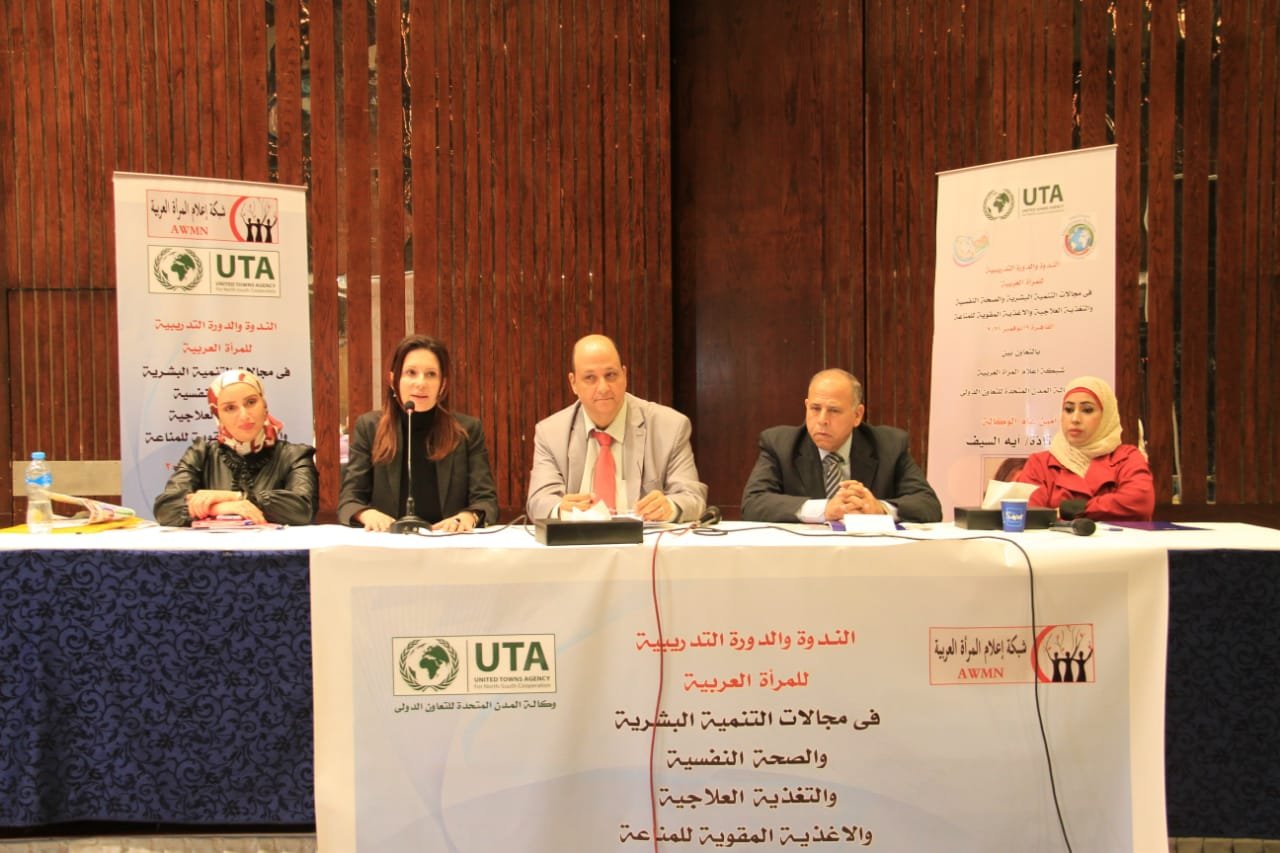 .قامت شبكة إعلام المرأة العربية بالتعاون مع وكالة المدن المتحدة للتعاون الدولى بتنظيم ندوة ودورة تدريبية فى أحد الفنادق الكبرى بالقاهرة حضرها 80من النساء من 7دول عربية بالإضافة إلى 30من الشخصيات البارزة من الرجال شاركوا فى الندوة والدورة التدريبية سواء كمحاضرين أو متابعين شاركوا في المناقشات ..تضمنت الندوة و الدورة التدريببة محاضرات مكثفة حول التنمية البشرية والصحة النفسية والتغذية العلاجية والأدوية المقوية للمناعة قام بالقاء تلك المحاضرات دكتورة هالة سكر خبيرة التنمية البشرية والأستاذة منال على خبيرة التغذية العلاجية والدكتورة أميرة القللى خبيرة الصحة النفسية والباحث الاستاذ نبيل محروس رئيس مؤسسة إزرع شجرة بإشراف اللجنة العلمية فى الشبكة برئاسة الأستاذة الدكتورة صفاء سيد … وتغطيات اعلامية ..اعلامية منال عبد السلام ، روان صبرى .