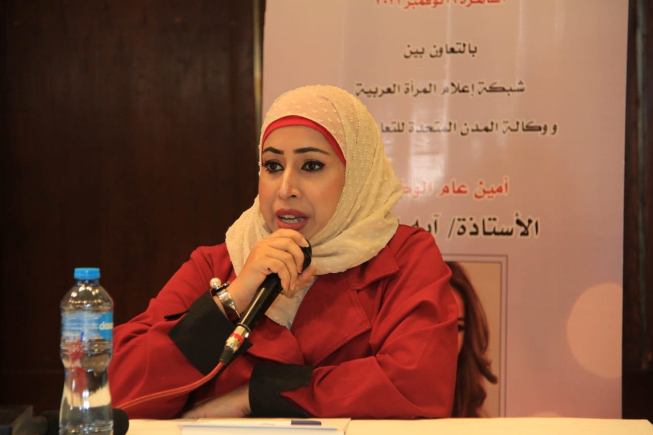 معالي المستشار الإعلامي ومؤسس شبكة إعلام المرأة العربية الاخ الفاضل والمتميز دكتور معتز صلاح الدين ، معالي اللواء اركان حرب محسن حلمي احمد القيادي البارز في الشبكة ، الإعلامية أمنية بدرالدين المندوبة عن دولة اليمن لوكالة المدن المتحدة للتعاون الدولي ،السفيرة ٱمنة محسن الامين العام المساعد للشبكة ، السادة المحاضرين السيدات والسادة ضيوفنا الكرام ، السلام عليكم ورحمة الله وبركاته ، يشرفني بإسمي وبإسمكم جميعا ان اتوجه بالشكر والتقدير إلى فخامة الرئيس عبدالفتاح السيسي رئيس جمهورية مصر العربية على دعمه المتواصل لتحقيق اهداف التنمية المستدامة وحرصه على العمل التنموي العربي المشترك وتفعيل دور المرأة في دعم التنمية الشاملة في الوطن العربي .