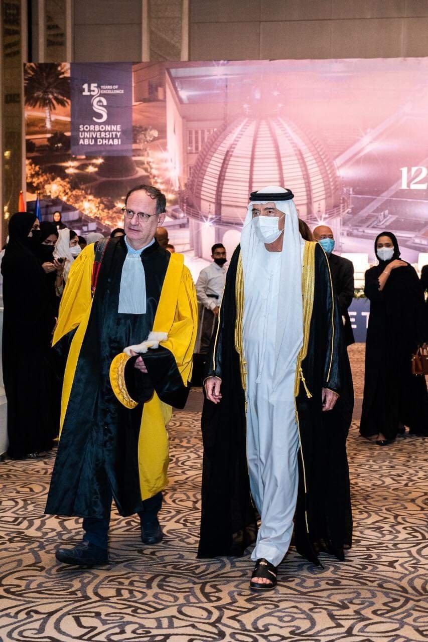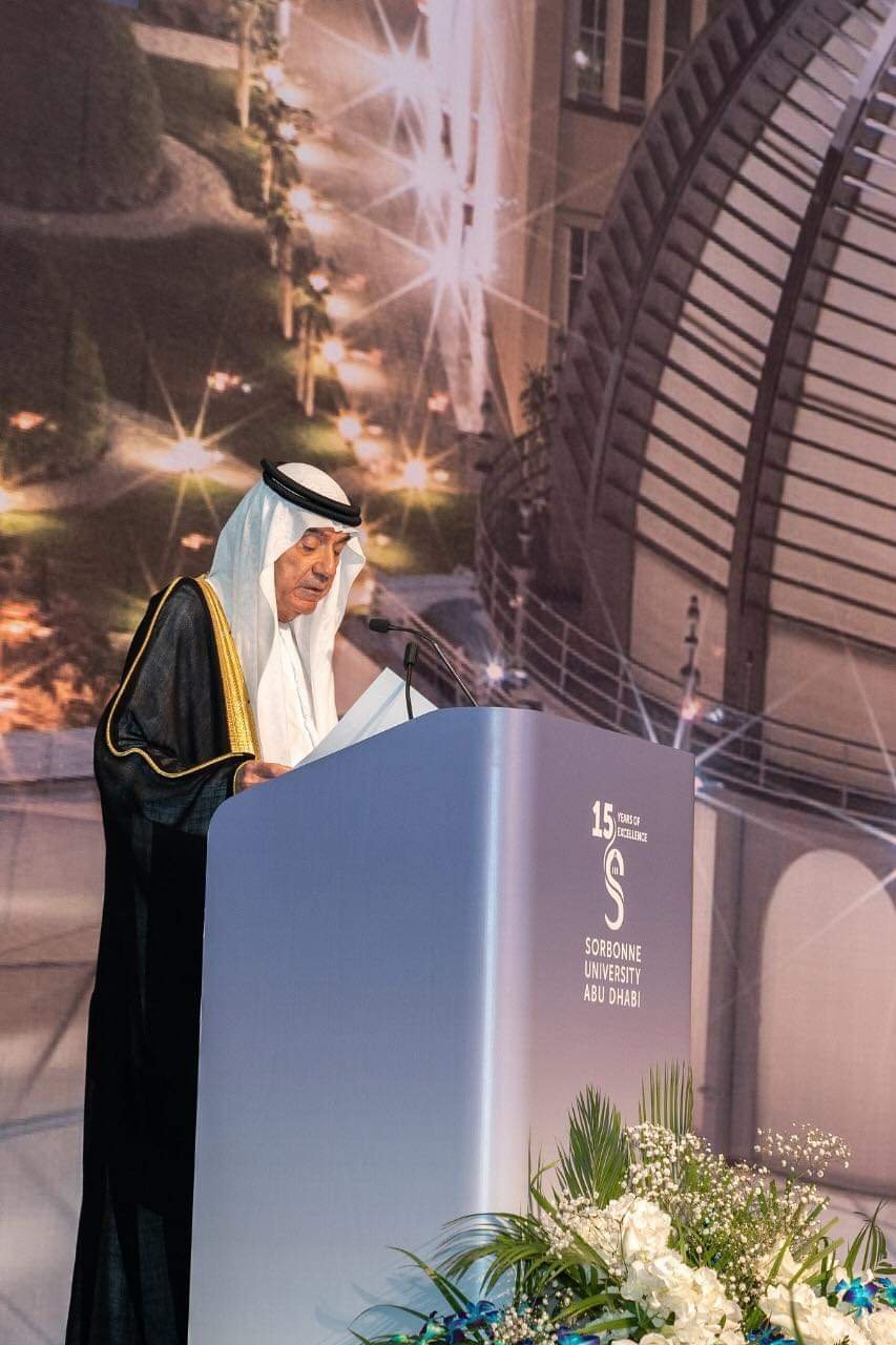 وقال: “يتزامن احتفالنا هذا العام مع الذكرى الخامسة عشرة لتأسيس جامعة السوربون أبوظبي. في هذا الوقت أصبحت مؤسسة ثقافية وتعليمية مهمة ومميزة. مما يعزز تقدم أبوظبي نحو تحقيق هدفها المتمثل في تحقيق مكانة رائدة في المجالات الأكاديمية والعلمية والثقافية. وتقدّم الجامعة برامج متميزة وفريدة من نوعها في مجموعة من التخصصات، وتهيئ الطلاب لمتطلبات التوظيف وتمكينهم من ريادة التغيير بما يتماشى مع رؤية الإمارات العربية المتحدة لمئوية الدولة في عام 2071”.