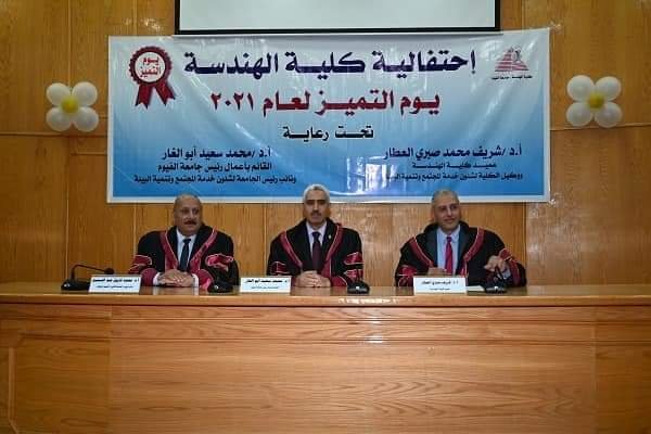 شملت فعاليات الاحتفالية تكريم أ.د محمد سعيد ابو الغار، القائم بأعمال رئيس جامعة الفيوم، وأ.د محمد فاروق، نائب رئيس الجامعة لشئون التعليم والطلاب، وأ.د عرفة صبري، نائب رئيس الجامعة لشؤون الدراسات العليا والبحوث وأ.د شريف العطار، القائم بأعمال عيد كلية الهندسة.