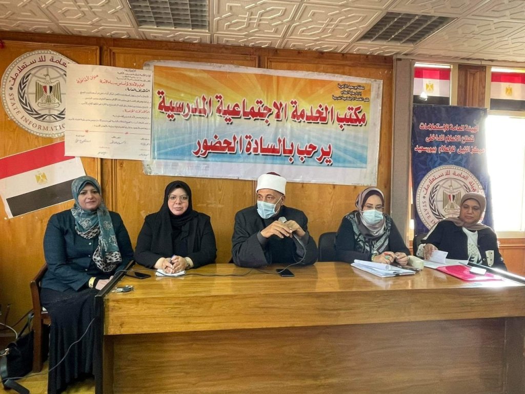 يستمر مركز النيل للاعلام ببورسعيد بالتعاون مع مكتب الخدمة الاجتماعية بالمنطقة الأزهرية في قوافل الرعاية الاجتماعية والتي استهدفت اليوم فتيات المعاهد الأزهرية بالمرحلة الاعدادية والثانوية تحت شعار ” العلم والأخلاق معيار تقدم الأ مم ” بحضور الدكتور وسيم متولي رئيس المنطقة الازهرية و الاستاذة سماح حامد مدير مركز النيل للاعلام و الاستاذة الدكتورة عبير النعناعي استاذ بالمعهد العالي للخدمة الإجتماعية و الدكتورة نشوي شبانة مدير التعليم الثانوي و الأستاذة ستوتة عبد العزيز مدير رعاية الطلاب و الأستاذة سو مية عبد المجيد رئيس مكتب الخدمة الإجتماعية والأستاذ محمد فؤاد مسئول مكتب الخدمة الاجتماعية و عدد من الأخصائيين الاجتماعيين بالمعاهد الازهرية.