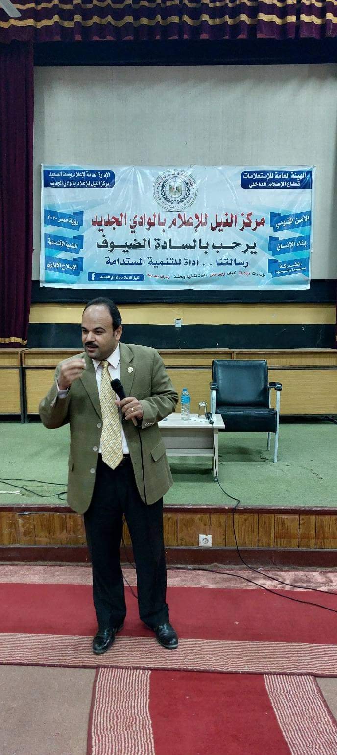 اختتم مركز النيل للاعلام فعاليات البرنامج الاعلامى قيادة الغد والادارة الاستراتيجية والذى شارك فيه قيادات الصف الاول والثانى بالقطاعات الحكومية المختلفة واستضاف المركز فى اللقاء الختامى سيادة النائب البرلمانى ا.احمد العقاطى ود.محسن عبد الوهاب رئيس مجلس ادارة مكتبة مصر العامة وا.نادية عزمى مقررة فرع المجلس القومى للمرأه بالوادى الجديد