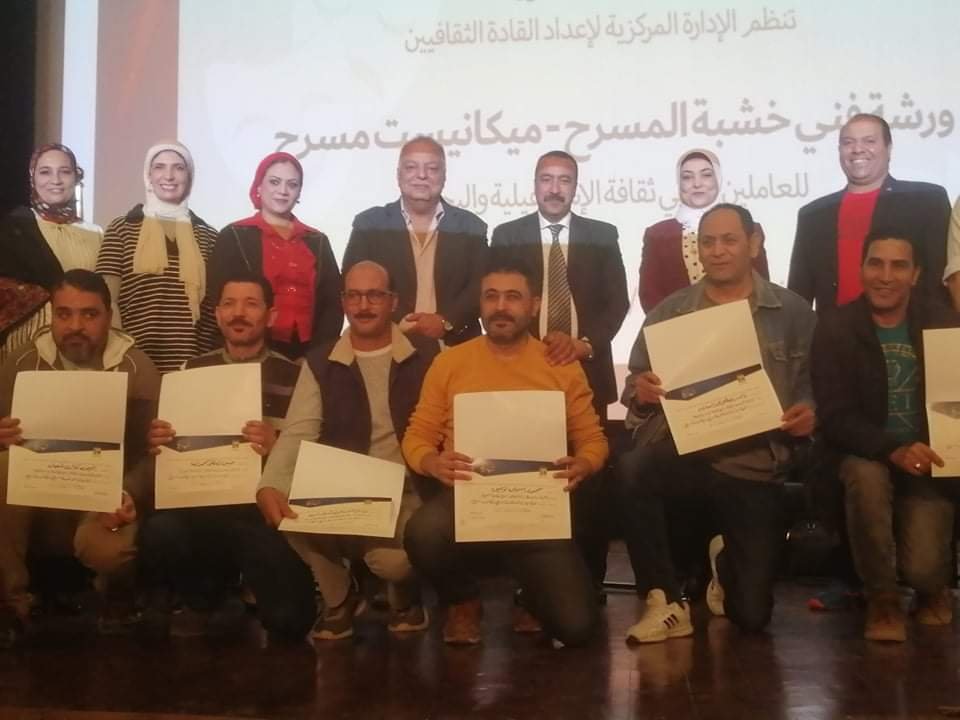 شهدت دكتورة منال علام رئيس الإدارة المركزية لإعداد القادة الثقافيين ظهر اليوم على مسرح قصر ثقافة الإسماعيلية ختام الورشة التدريبية “فني خشبة مسرح – ميكانيست مسرح “