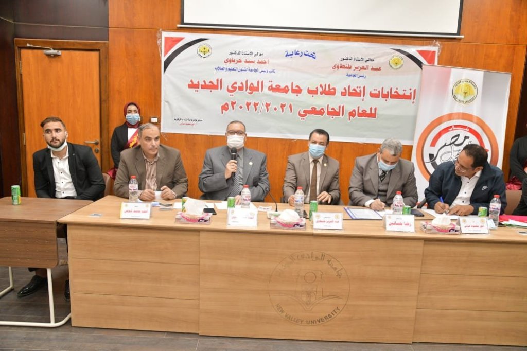أعلنت جامعة الوادى الجديد اسماء الفائزين في إنتخابات الإتحادات الطلابية بحضور الأستاذ الدكتور عبد العزيز طنطاوى رئيس جامعة الوادى الجديد والأستاذ الدكتور أحمد سيد حرباوى نائب رئيس الجامعة لشئون التعليم والطلاب ورئيس اللجنة العليا للإشراف والتنظيم على إنتخابات الإتحادات الطلابية بجامعة الوادى الجديد وعضوية الأستاذ الدكتور رضا حسنين عميد كلية العلوم ممثل أعضاء هيئة التدريس بالجامعة والأستاذ أحمد شوقى مدير عام إدارة الشئون القانونية بالجامعة و مدير إدارة رعاية الشباب بالجامعة والطالب عمر محمود ممثل عن طلاب الجامعة والسادة عمداء ووكلاء الكليات وأعضاء هيئات التدريس وإدارة الشئون القانونية بالجامعة ومسئولى رعاية الشباب وأمن الجامعة والعلاقات العامة وأعضاء إتحاد طلاب الكليات السبع أجريت اليوم الخميس 2/12/2021 انتخابات إتحاد طلاب جامعة الوادى الجديد للعام الجامعى 2021 /2022