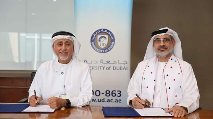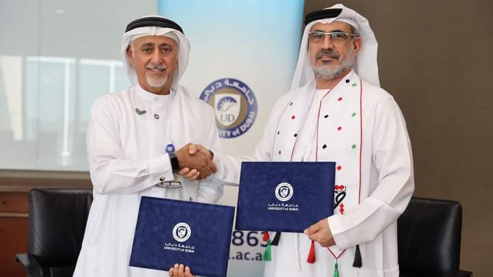 وقع رئيس مجلس الادارة سعادة الدكتور سيف الجابري ورئيس جامعة دبي سعادة الاستاذ الدكتور عيسى البستكي مذكرة تفاهم في جامعة دبي -دولة الامارات العربية المتحدة