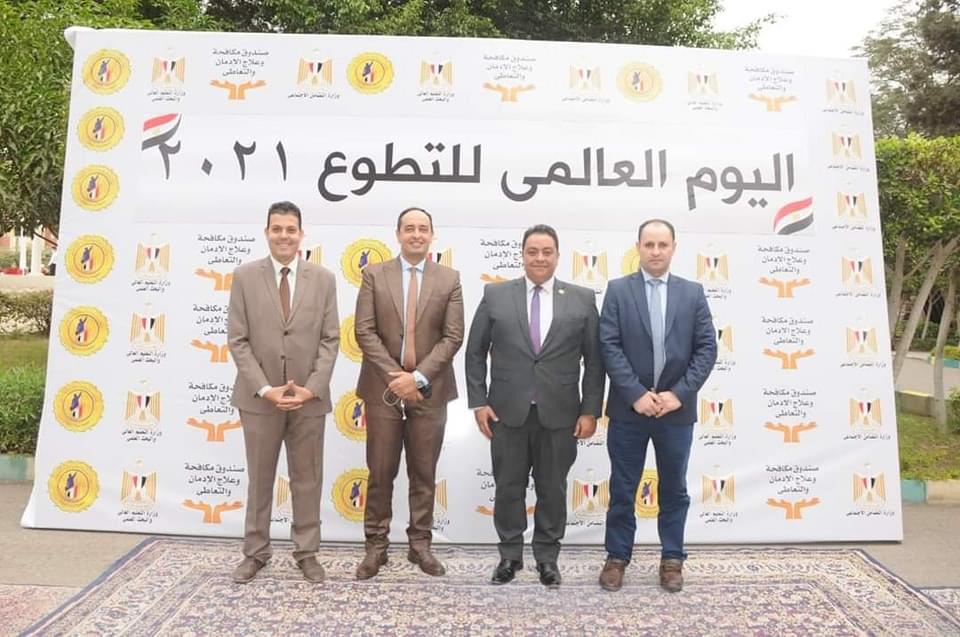 تحت رعاية / نيفين القباج وزيرة التضامن الاجتماعي ورئيس مجلس إدارة صندوق مكافحة وعلاج الإدمان والتعاطي، نظم الصندوق احتفالية بمناسبة اليوم العالمي للتطوع بالتعاون مع معهد إعداد القادة بحلوان ،بحضور عمرو عثمان مساعد وزير التضامن الاجتماعي ومدير صندوق مكافحة وعلاج الإدمان والتعاطي ،والدكتور كريم همام مدير معهد إعداد القادة بحلوان بمشاركة 700 شاب وفتاة من المتطوعين لدى صندوق مكافحة وعلاج الإدمان من ممثلي المحافظات المختلفة .