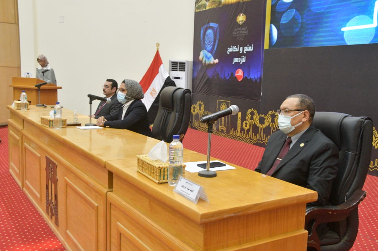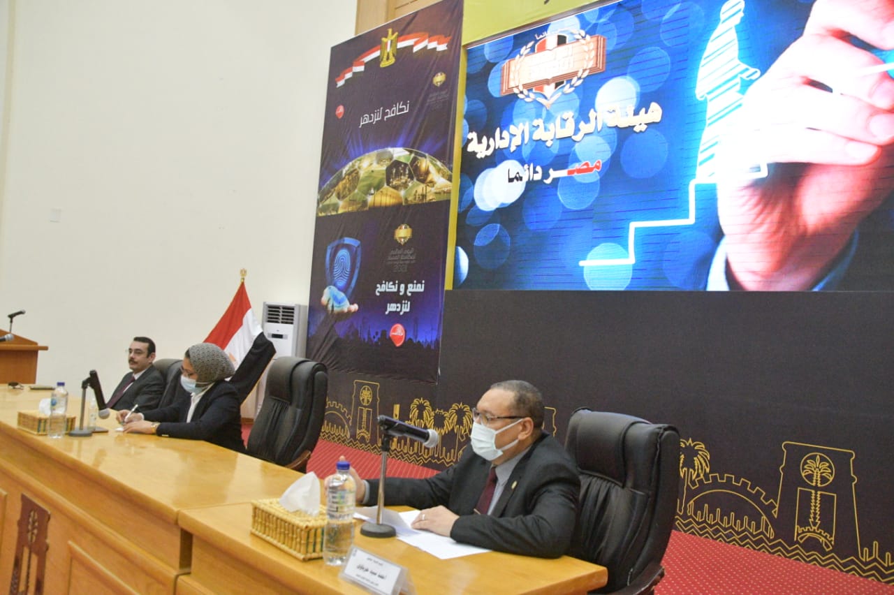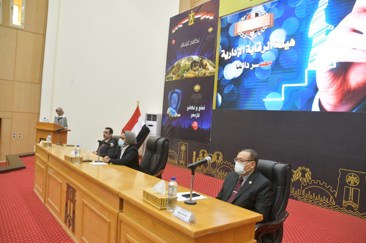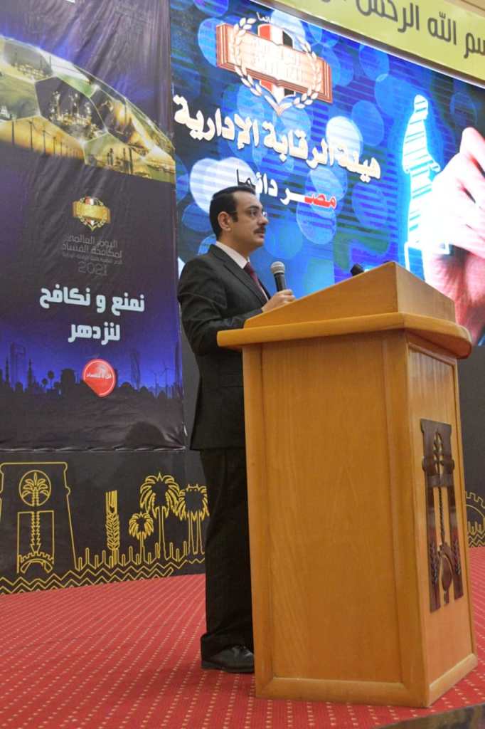 شارك الأستاذ الدكتور أحمد سيد حرباوى نائب رئيس جامعة الوادى الجديد لشئون التعليم والطلاب نائبا عن الأستاذ الدكتور عبد العزيز طنطاوى رئيس الجامعة فى الاحتفال باليوم العالمي لمكافحة الفساد) بقاعة المؤتمرات بديوان عام المحافظة الذي نظمه فرع هيئة الرقابة الإدارية بالمحافظة وذلك بحضور السيدة حنان مجدى نائب محافظ الوادى الجديد والسيد العميد مصطفى ناجي رئيس فرع الهيئة،الرقابة الإدارية بالوادى الجديد ولفيف من القيادات التنفيذية والقيادات المعنية وذلك تحت شعار “لا للفساد.. نكافح لنزدهر”