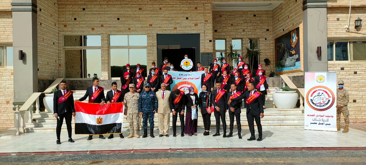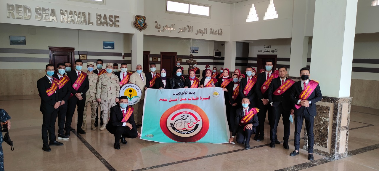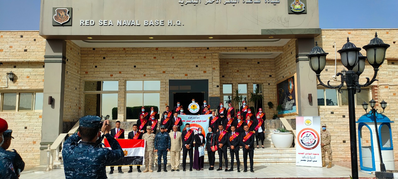 فقد نظمت جامعة الوادي الجديد بالتعاون مع إدارة التربية العسكرية بالجامعة وبرعاية كريمة من معالى الأستاذ الدكتور عبد العزيز طنطاوى رئيس الجامعة وإشراف الأستاذ الدكتور أحمد سيد حرباوى نائب رئيس الجامعة لشئون التعليم والطلاب وسيادة المقدم توفيق عبد الصبور توفيق مدير التربية العسكرية بالجامعة زيارة تعريفية لطلاب أسرة طلاب من أجل مصر الفائزين برئاسة وعضوية إتحاد طلاب الجامعة والكليات لقاعدة البحر الأحمر البحرية بمدينة سفاجا بهدف تعريف الطلاب بدور القاعدة في حماية مياهنا الإقليمية ودور القاعدة في الدفاع عن أرض الوطن ودور القوات البحرية ومدى تطور سلاح البحرية المصرى .