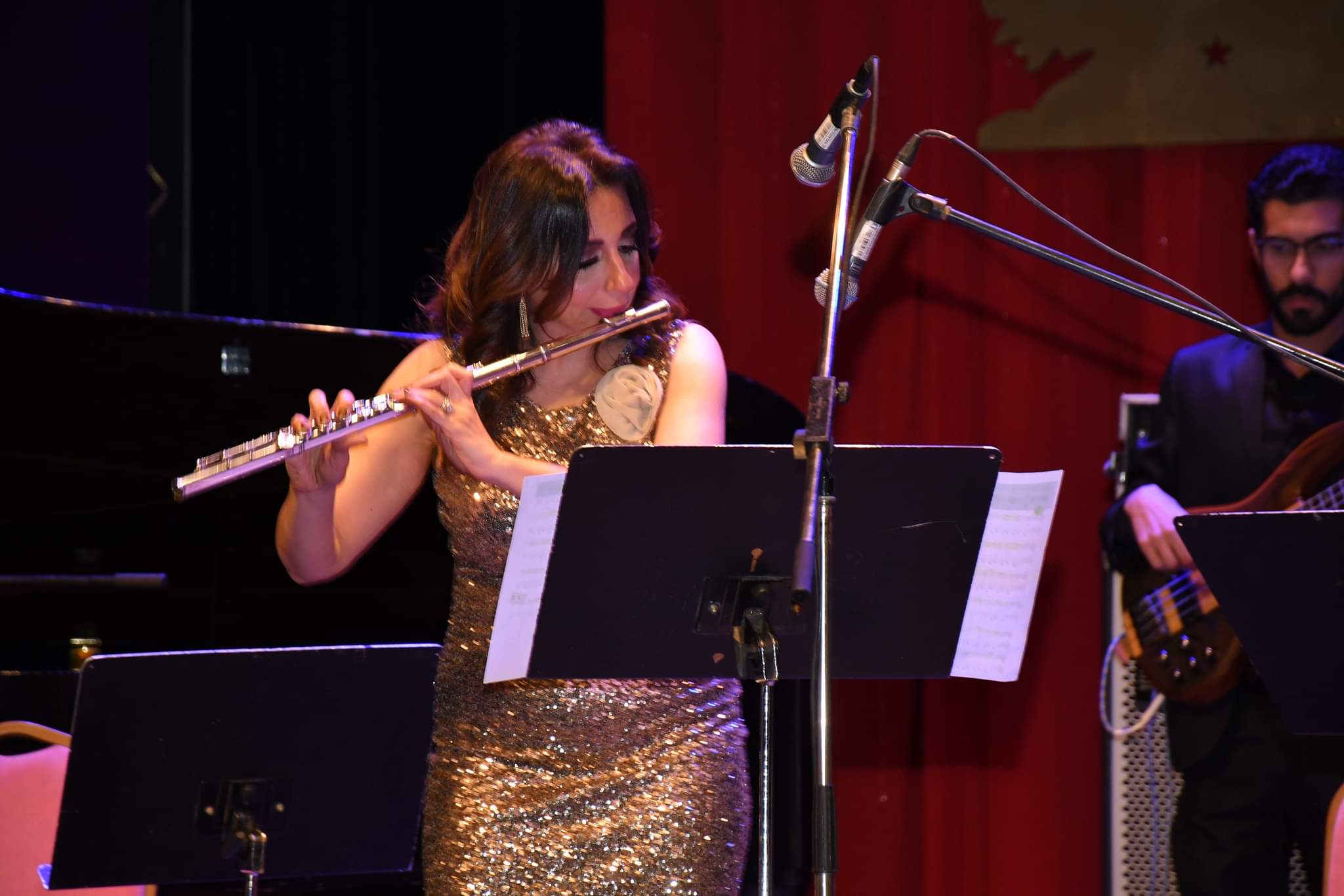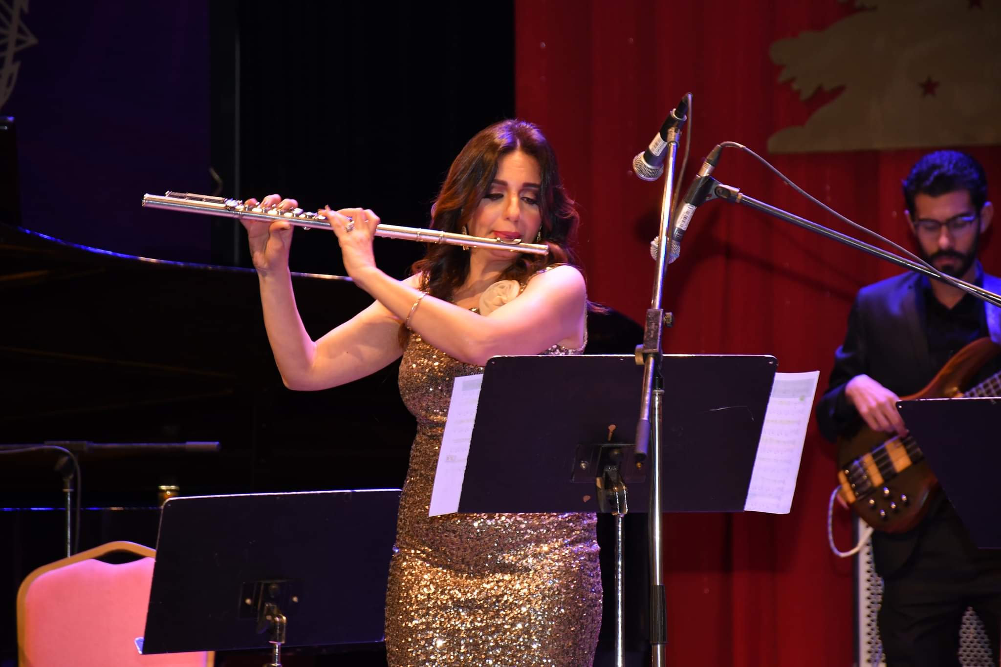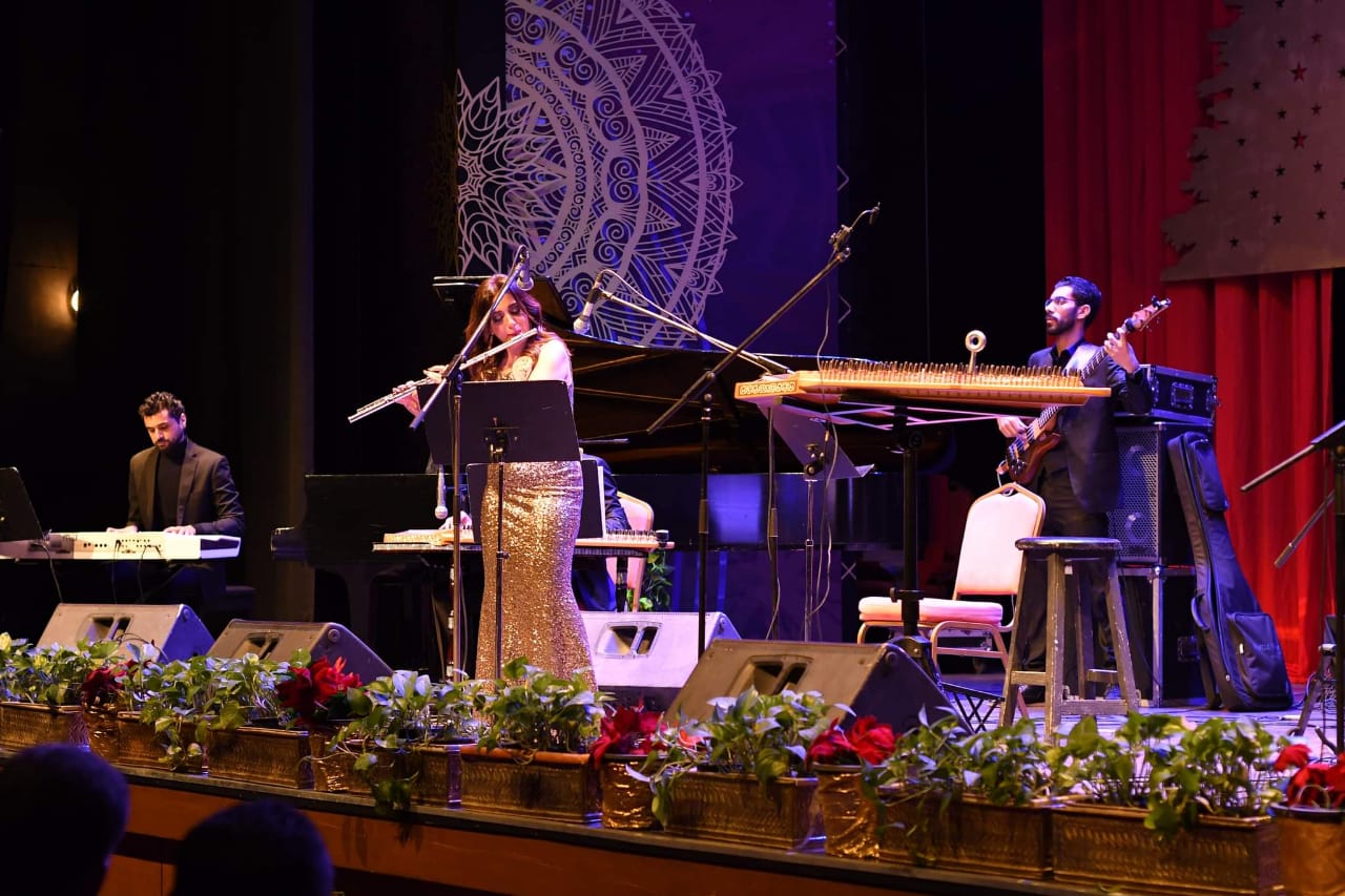 صاحبت الفرقة الموسيقية هذه المعزوفات الجميلة حيث شارك بالعزف كل من عمرو راشد بركشن ،أحمد حشيش كى بورد ،محمد رستم بيز جيتار ،مصطفى محمد إيقاع شرقى ،وليد خليل درامز ،أكرم رافت قانون. وعزفت سينيوريتا وسواى وجينجل بيلز احتفالا بالكريسماس وبيليفر ،واستهلت الجزء الشرقى بمعزوفة قوم يا مصرى لحن سيد درويش ومن بعدها طوبة فوق طوبة وسهر الليالى ونسم علينا الهوا وليلة حب وأهواك وماشربتش من نيلها وخليك فاكرنى وأحلف بسماها. وغنى الجمهور وصفق مع هذه المقطوعات التى اندمج معها فى روعة آلة الفلوت ذات الصوت البراق الحالم.