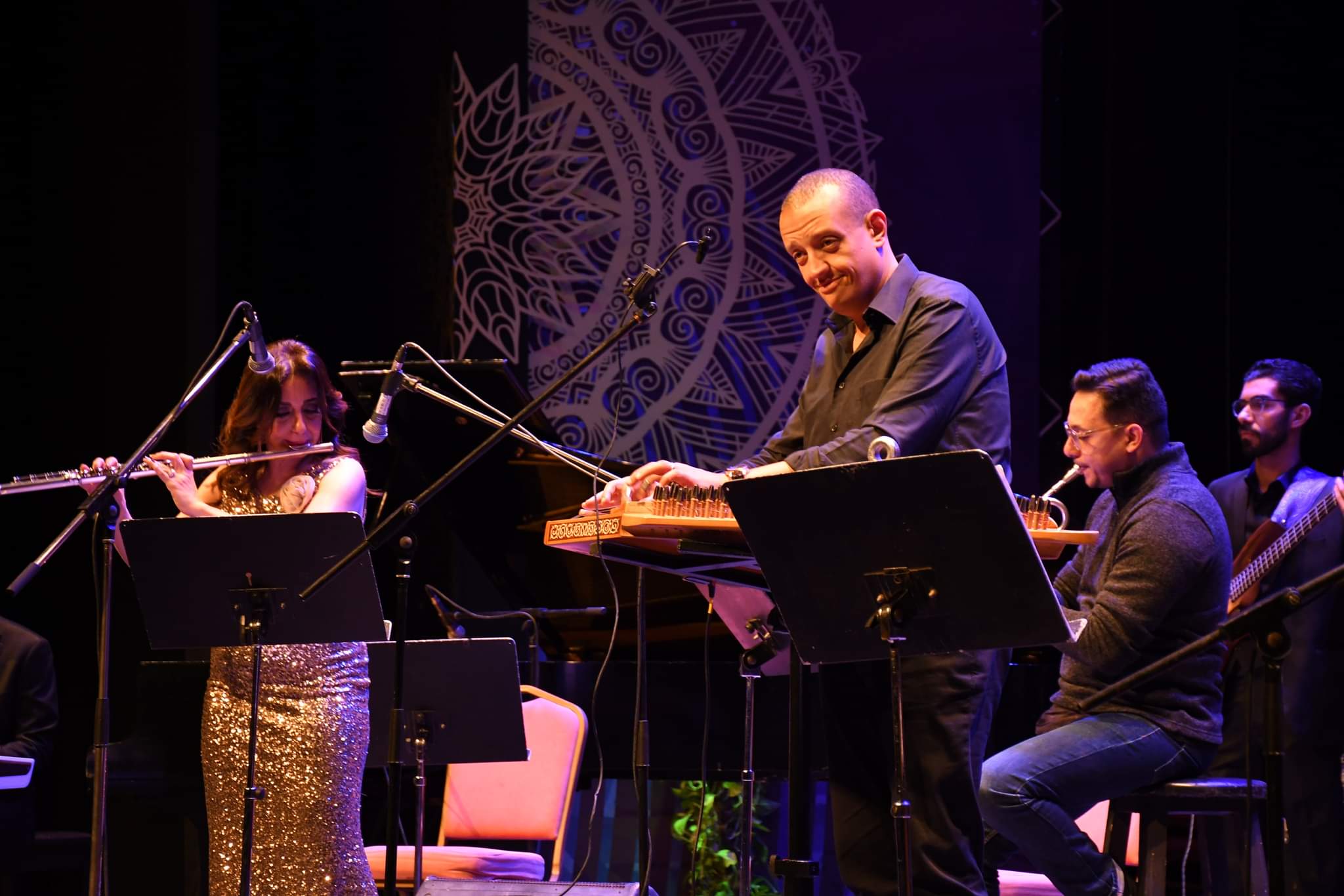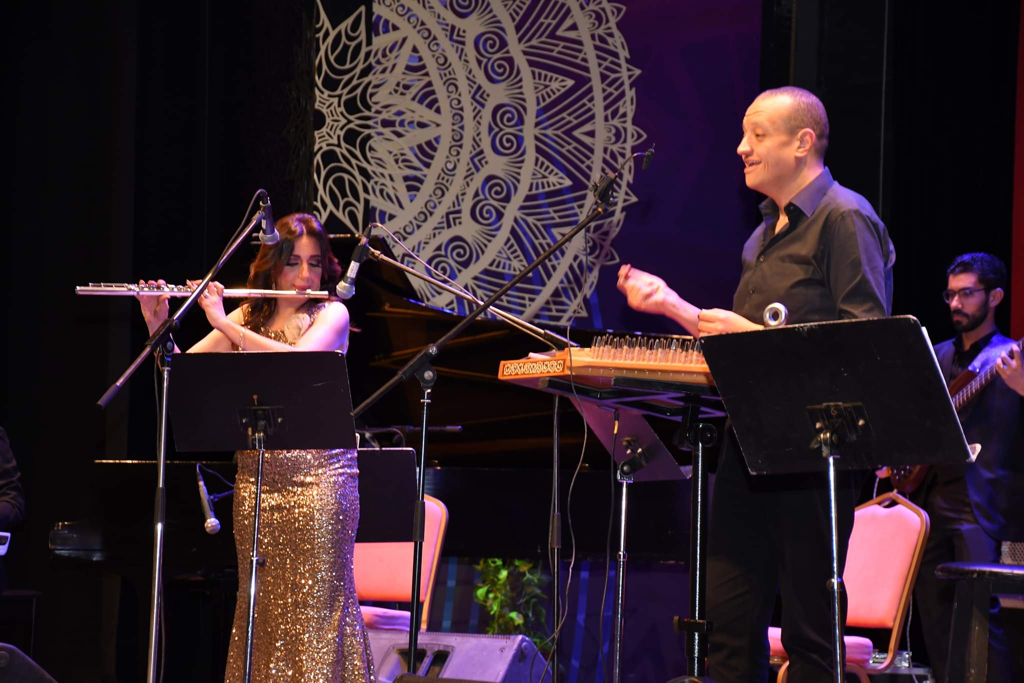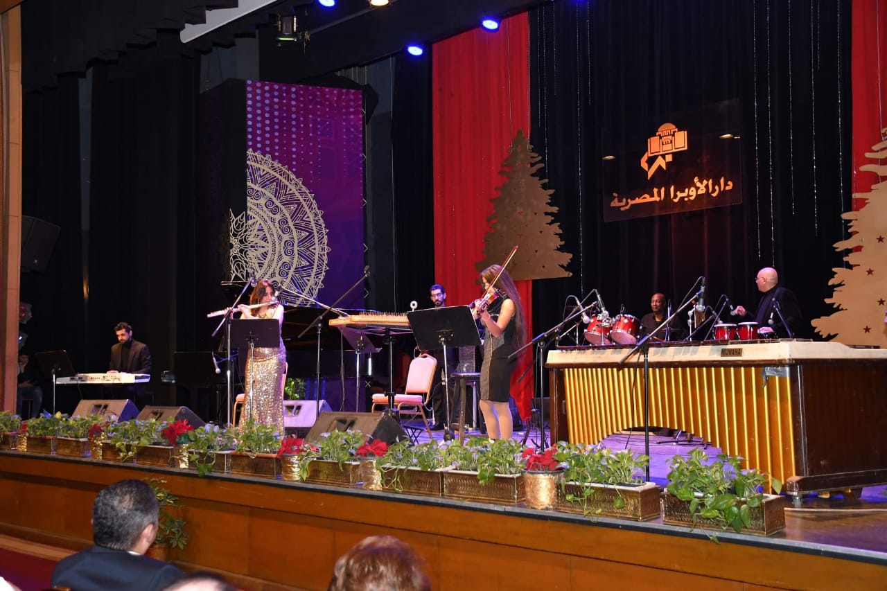 صاحبت الفرقة الموسيقية هذه المعزوفات الجميلة حيث شارك بالعزف كل من عمرو راشد بركشن ،أحمد حشيش كى بورد ،محمد رستم بيز جيتار ،مصطفى محمد إيقاع شرقى ،وليد خليل درامز ،أكرم رافت قانون. وعزفت سينيوريتا وسواى وجينجل بيلز احتفالا بالكريسماس وبيليفر ،واستهلت الجزء الشرقى بمعزوفة قوم يا مصرى لحن سيد درويش ومن بعدها طوبة فوق طوبة وسهر الليالى ونسم علينا الهوا وليلة حب وأهواك وماشربتش من نيلها وخليك فاكرنى وأحلف بسماها. وغنى الجمهور وصفق مع هذه المقطوعات التى اندمج معها فى روعة آلة الفلوت ذات الصوت البراق الحالم.