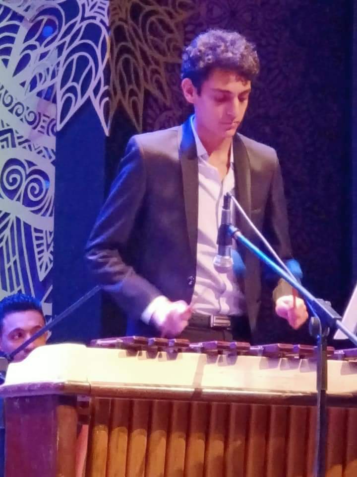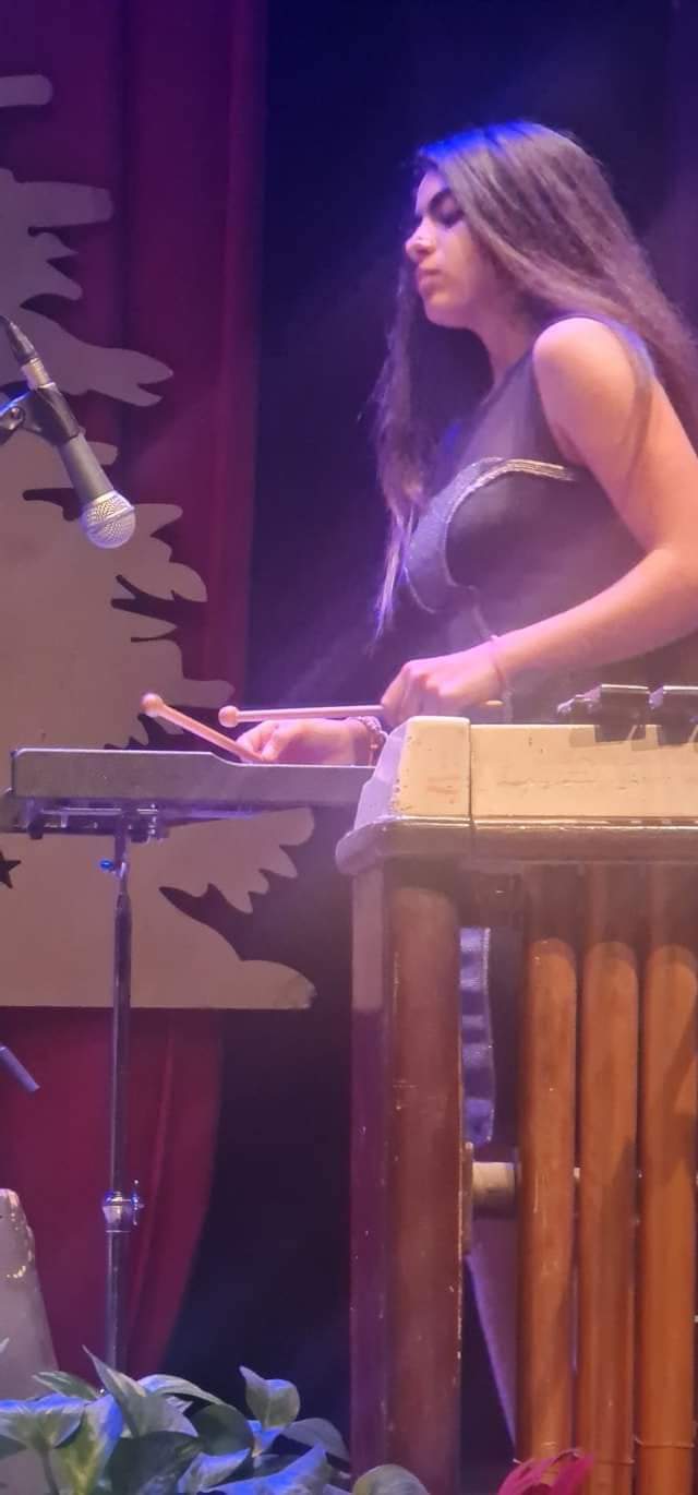 كذلك شارك يحيى الهرميل فى عدد من المقطوعات على آلة الماريمبا ،وصفق له الحضور بحفاوة بالغة حين توحد مع آلته كبيرة الحجم رقيقة النغمات فى معزوفته المنفردة ،بينما هامت فريدة الهرميل بين الكمان والاكسليفون والماريمبا برقة وتألق.