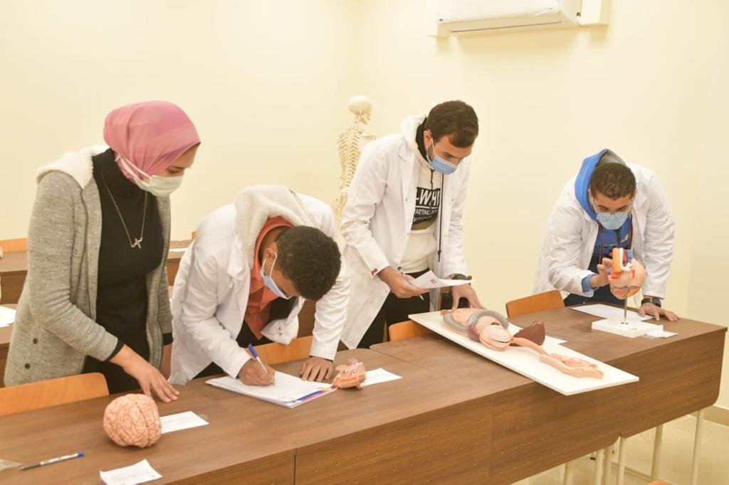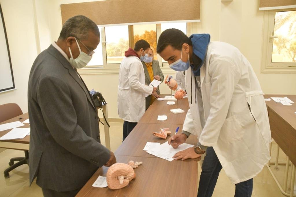 اجرت كلية الطب جامعة الوادى الجديد الإمتحان العملي لمادتى التشريح والهستولوجى تحت إشراف الأستاذ الدكتور فاتن يوسف والأستاذ الدكتور أيمن صلاح استاذ التشريح بكلية الطب جامعة اسيوط كما تم اجراء امتحان مادة العملي هستولوجي تحت اشراف الأستاذ الدكتور صفاء سعيد بكلية الطب جامعة أسيوط