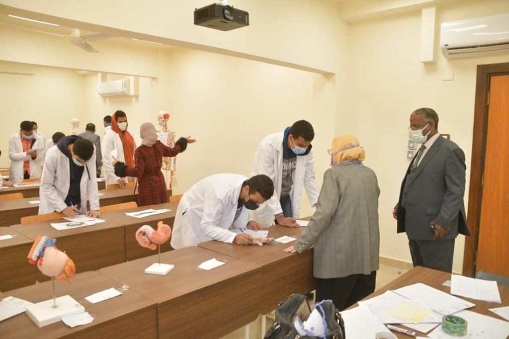وقال الأستاذ الدكتور حسن عبد اللطيف نائب رئيس الجامعة والمشرف على كلية الطب البشرى بالوادى الجديد ان 106 طالب وطالبة ادوا الإمتحان مع اتخاذ كافة التدابير اللازمة لاجراء الإمتحان من تباعد إجتماعي وارتداء الكمامات