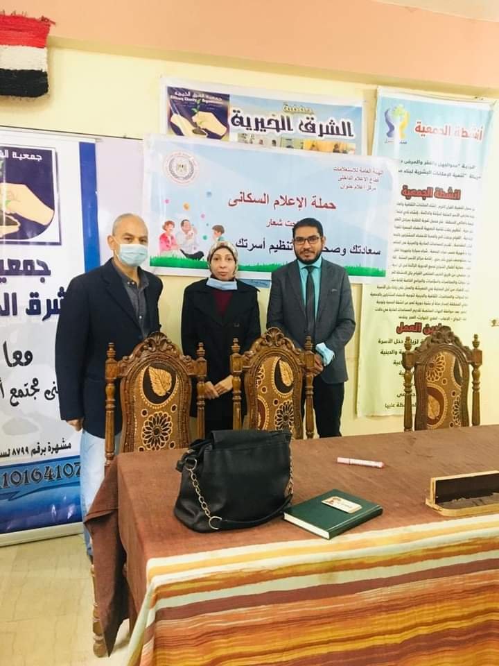 وذلك فى إطار جهود الدولة فى نشر الوعى الصحى والسكانى بين المواطنين و خاصة الإهتمام بالمرأة و صحتها وتحت شعار (سعادتك وصحتك فى تنظيم اسرتك )