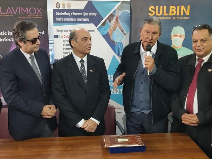 بحضور ا.د أشرف شومة عميد الكلية و ا.د أمجد فؤاد رئيس أقسام الجراحة و ا.د وليد عمر رئيس قسم ٨ ج و ا.د تامر يوسف رئيس قسم ٦ جراحة و ا.د الشعراوي موسى مدير المستشفى الجامعي وا.د أمل رشاد نائب مدير المستشفى الجامعي ومدير العمليات والعناية المركزة ولفيف كريم من السادة الأطباء بأقسام الجراحة ٦ و٧ و٨ والجهاز الهضمي والزملاء من وزارة الصحة بمستشفيات المحلة وسمنود ودكرنس وبلقاس والسنبلاوين وأجا