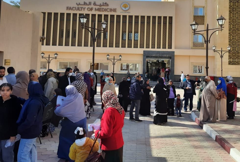 فى إطار المبادرة الرئاسية لفخامة السيد الرئيس عبد الفتاح السيسي رئيس الجمهورية ( حياة كريمة ) وتحت رعاية الأستاذ الدكتور عبد العزيز طنطاوى رئيس جامعة الوادى الجديد وبإشراف الأستاذ الدكتور حسن عبد اللطيف نائب رئيس الجامعة لشئون الدراسات العليا والبحوث والمشرف على كلية الطب البشرى والأستاذ الدكتور احمد سيد حرباوى نائب رئيس الجامعة لشئون التعليم والطلاب