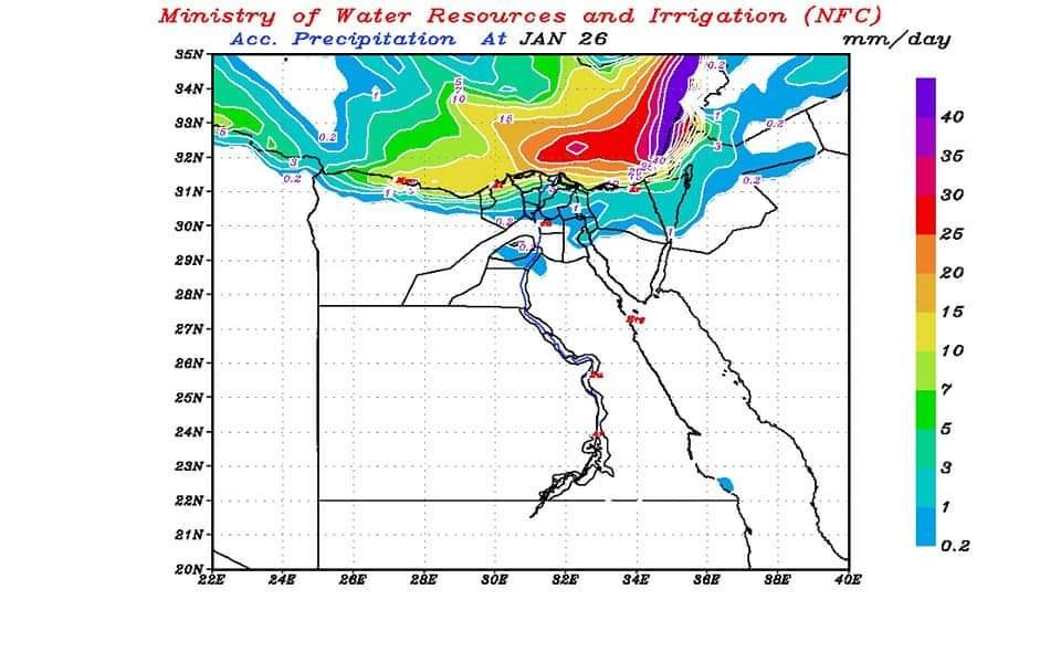 تلقى السيد الدكتور/ محمد عبد العاطى وزير الموارد المائية والرى تقريراً يستعرض موقف الإجراءات التى اتخذتها أجهزة الوزارة للتعامل مع موجة الأمطار الغزيرة التى تعرضت لها عدد من محافظات الجمهورية يوم ٢٦ يناير الجارى.