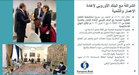 • 8.7 مليار يورو محفظة التعاون الإنمائي مع البنك الأوروبي بزيادة أكثر من مليار يورو تمويلات تنموية خلال عام 2021 للقطاعين الحكومي والخاص