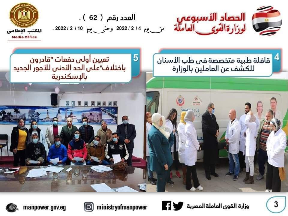 وقامت مديرية القوى العاملة بالإسكندرية بتعيين أولى دفعات من “قادرون باختلاف” بأحد كبرى الشركات العالمية العاملة في مجال “كول سنتر” وذلك براتب ٢٤٠٠ جنيه ، في إطار توجيهات محمد سعفان وزير القوى العاملة بالبدء في تطبيق قرار المجلس القومي للأجور رقم ٥٧ لسنة ٢٠٢١ باحتساب الحد الأدنى للأجور للعاملين بالقطاع الخاص وذلك اعتبارا من الأول من يناير ٢٠٢٢