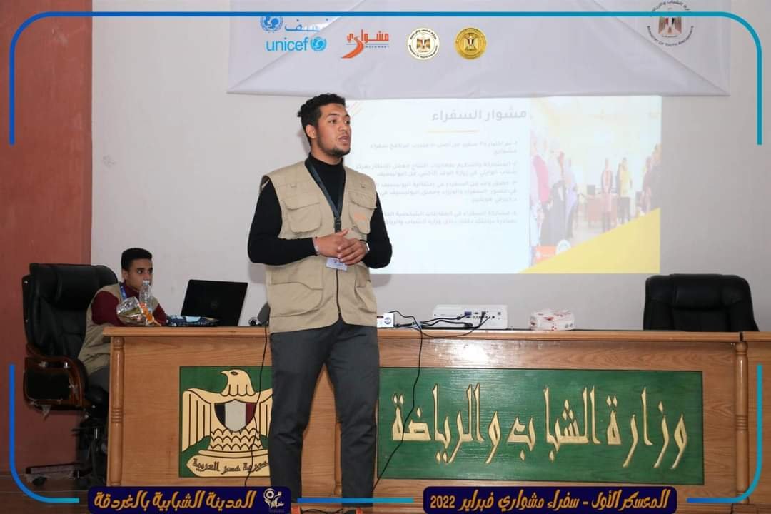 تنظم وزارة الشباب والرياضة من خلال الإدارة المركزية للمشروعات وتدريب الشباب، المعسكر الأول لبرنامج “سفراء مشواري”، والذي تنفذه الوزارة بالتعاون مع منظمة اليونسيف، بحضور 500 شاب وفتاة من سفراء برنامج مشواري، من محافظات”القاهرة، الشرقية، الدقهلية، كفر الشيخ، شمال سيناء)، خلال الفترة من (١٠-٢٠)فبراير الجاري، مقسمة علي ثلاثة أفواج، بالمدينة الشبابية بالغردقة.