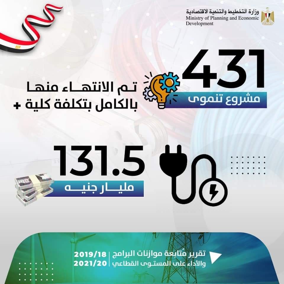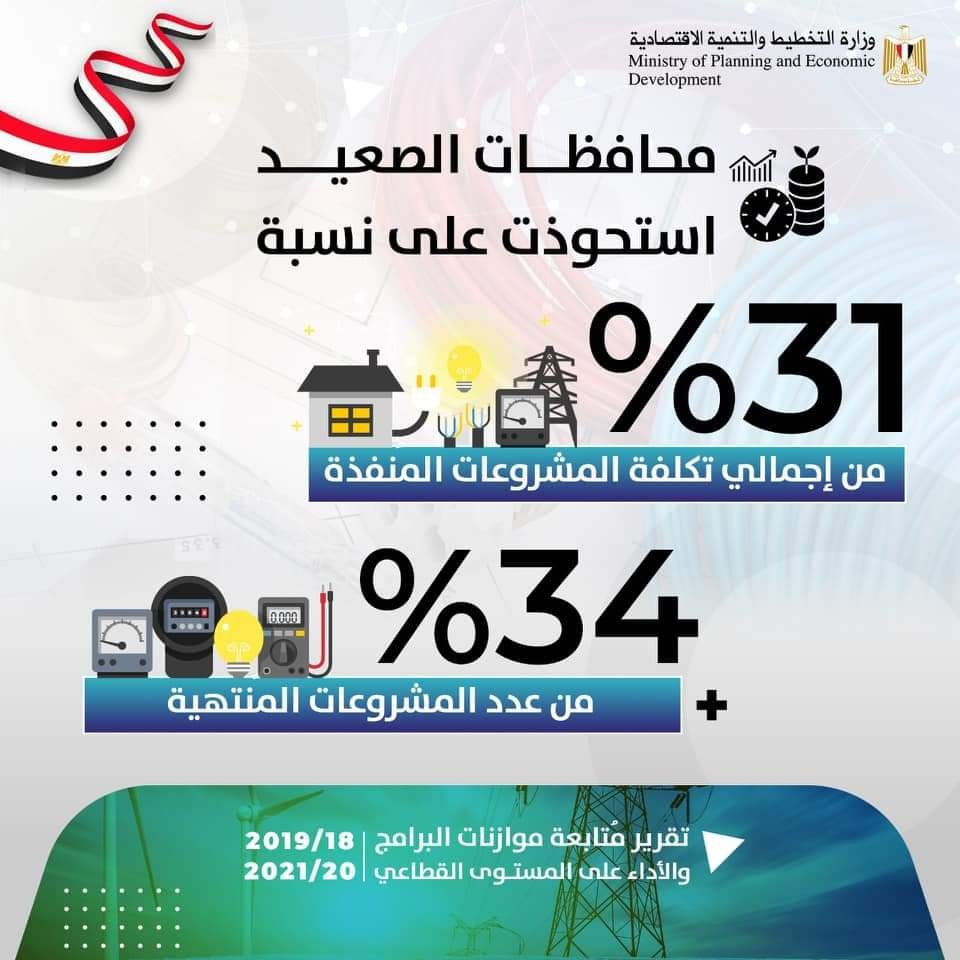 وقالت الدكتورة هالة السعيد، وزيرة التخطيط والتنمية الاقتصادية إنه تم الانتهاء من 431 مشروعًا تنمويًا بالكامل خلال الثلاث سنوات الماضية بتكلفة كلية تقدر بنحو 131.5 مليار جنيه، مشيرة إلى التوزيع الجغرافي للمشروعات المُنفذة، حيث تصدرت محافظة أسيوط باقي المحافظات من حيث تكلفة المشروعات، تلتها البحر الأحمر، ثم القاهرة والجيزة ومطروح ودمياط وسوهاج وأسوان، موضحة أن محافظات الصعيد استحوذت على نسبة 31% من إجمالي تكلفة المشروعات المُنفذة و34% من عدد المشروعات المُنتهية.