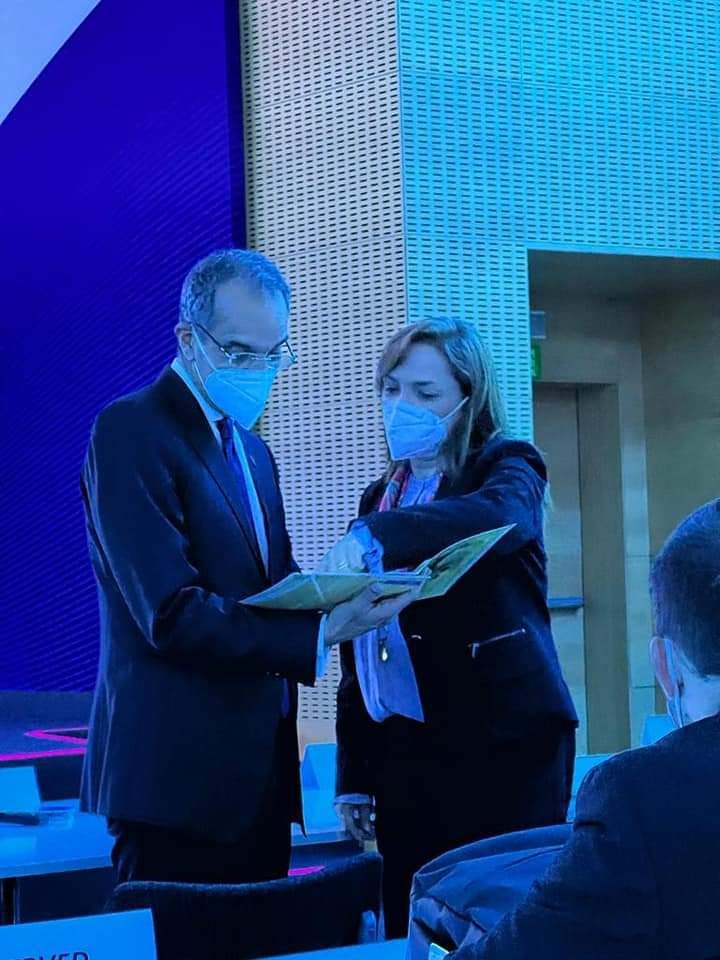 وفى كلمته؛ أوضح الدكتور/ عمرو طلعت جهود قطاع الاتصالات وتكنولوجيا المعلومات فى مصر لترسيخ دعائم العمل فى التخفيف من آثار التغير المناخى من خلال تبنى سياسة الاتصالات وتكنولوجيا المعلومات الصديقة للبيئة (الخضراء) فى كافة الأنشطة والمبادرات الخاصة بالقطاع؛ مشيرا إلى أنه يتم تطوير البنية التحتية للاتصالات فى أكثر من 4500 قرية على مدار ثلاث سنوات ضمن مبادرة حياة كريمة التى تستهدف ما يقرب من 58٪ من سكان مصر؛ انطلاقا من أهمية توفير أدوات الاتصالات والانترنت لأهالي القرى لتمكينهم من التنمية؛ موضحا أنه يتم ربط القرى بكابلات الألياف الضوئية تماشيا مع مساعى الحفاظ على البيئة حيث تستهلك كابلات الألياف الضوئية 12 مرة طاقة أقل لنقل البيانات من الكابلات النحاسية؛ مؤكدا أن مصر لديها خطة طموحة للتوسع العمرانى من خلال بناء 40 مدينة جديدة خلال العقدين المقبلين حيث بدأت فى تطوير الاستراتيجية الوطنية للمدن الذكية والمستدامة التى تتضمن خططًا لتجهيز مدن جديدة ترتكز على بنية تحتية وتقنيات صديقة للبيئة، مع العمل بالتوازى على التحول التدريجى فى المدن القديمة لنماذج أكثر اخضرارًا واستدامة.