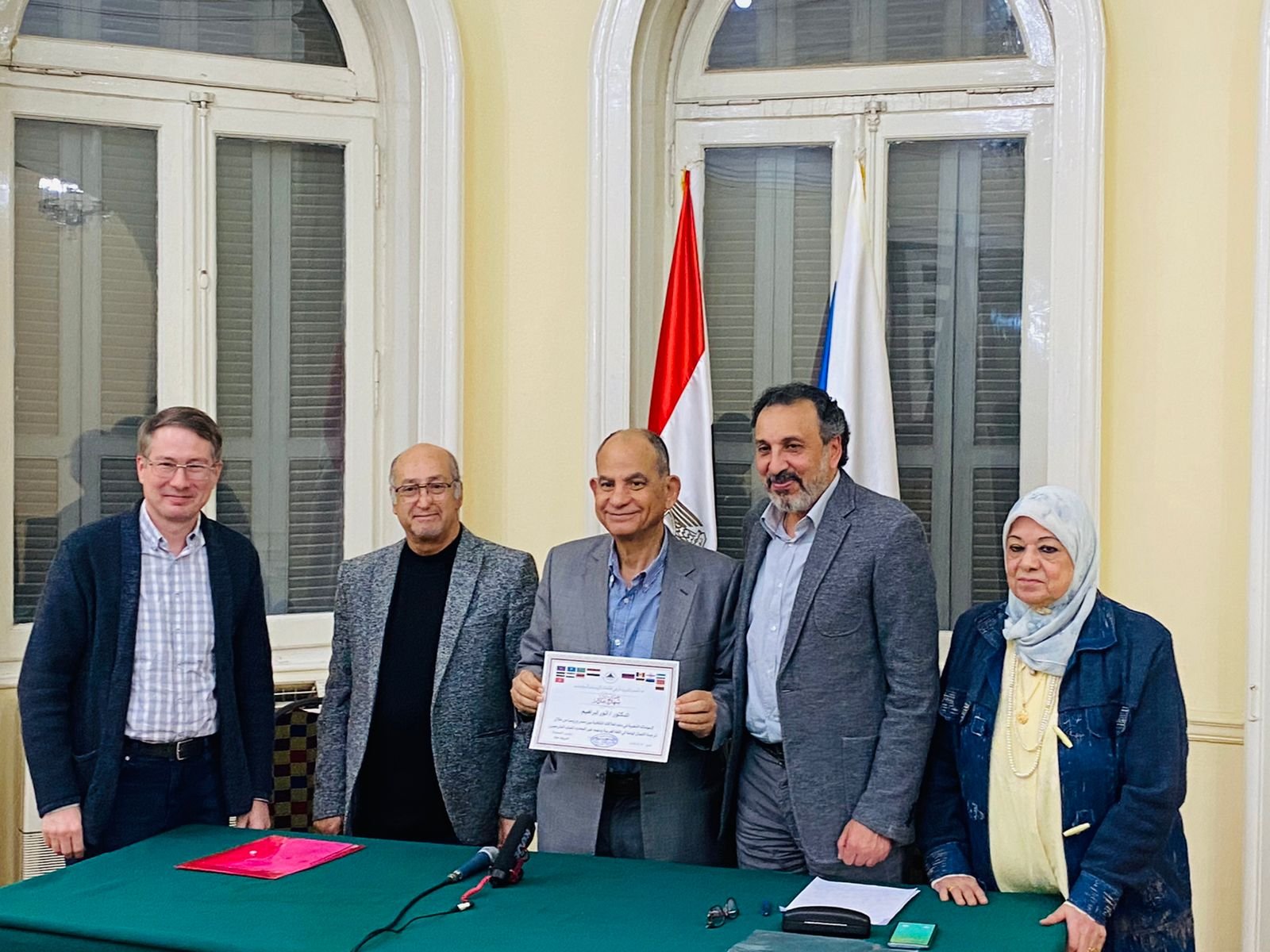 نظمت الجمعية المصرية لخريجى الجامعات الروسية والسوفيتية لقاءاً مفتوحاً مع د.”أنور ابراهيم” رئيس قطاع العلاقات الثقافية الخارجية الأسبق، والمشرف على مشروع سلسلة تصدرها الهيئة العامة لقصور الثقافة لإعادة إصدار الأدب الكلاسيكى الروسى بأسعار مخفضة. يأتى اللقاء الذى تم بمقر البيت الروسى بالقاهرة، فى اطار مشروع الجمعية للتعريف بالرواد من الخريجين فى كافة المجالات، وحضره كل من “شريف جاد” رئيس الجمعية ود.”فتحى طوغان” الأمين العام و”مراد جاتين” مدير المراكز الثقافية الروسية فى مصر، وعدد من الخريجين والمهتمين بمجال الترجمة.